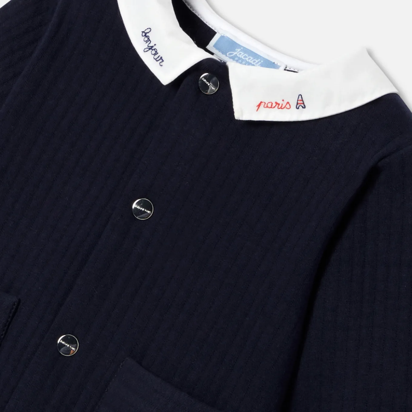 – Hand-embroidered poplin collar