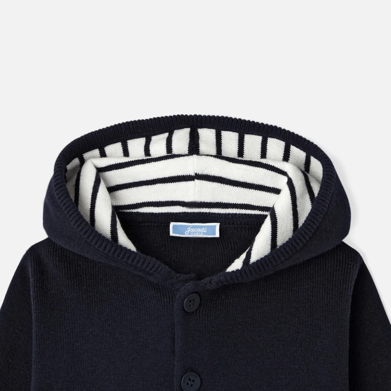– Hooded lining in striped jersey sailor-style