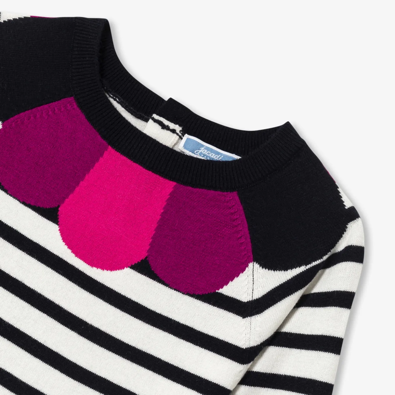 – Trompe-l’oeil petal collar in intarsia