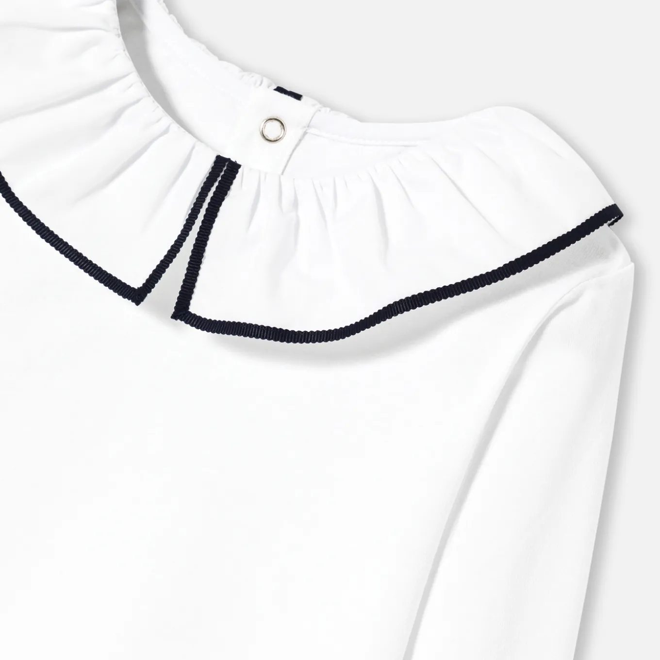 – Poplin collar edged with contrasting grosgrain