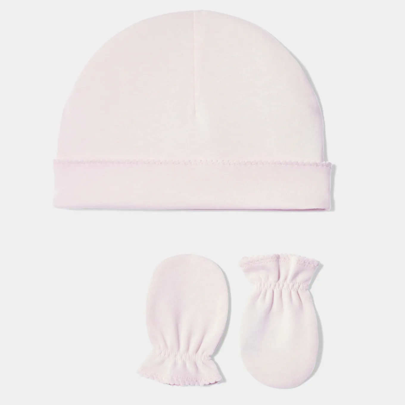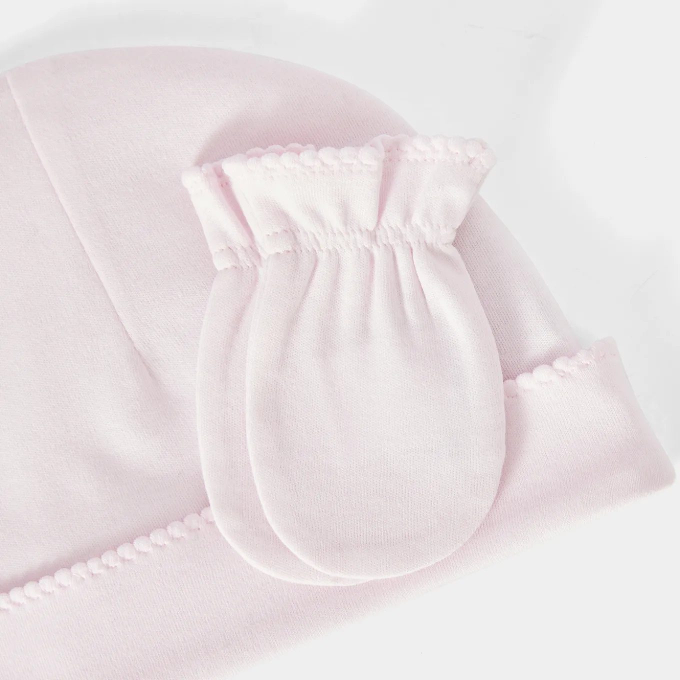 – Organic cotton baby girl bonnet and mittens
