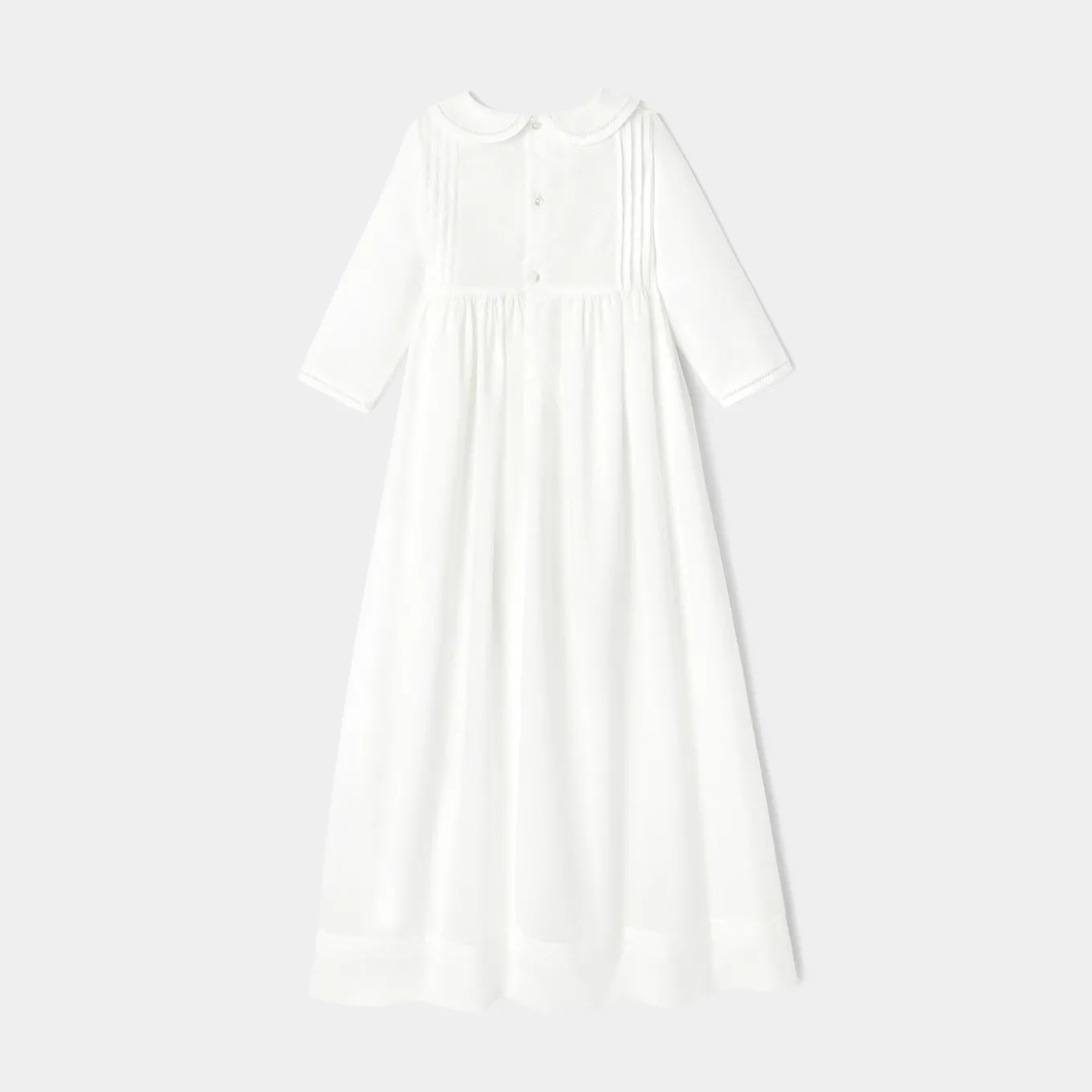 – Back closure with natural mother-of-pearl buttons.