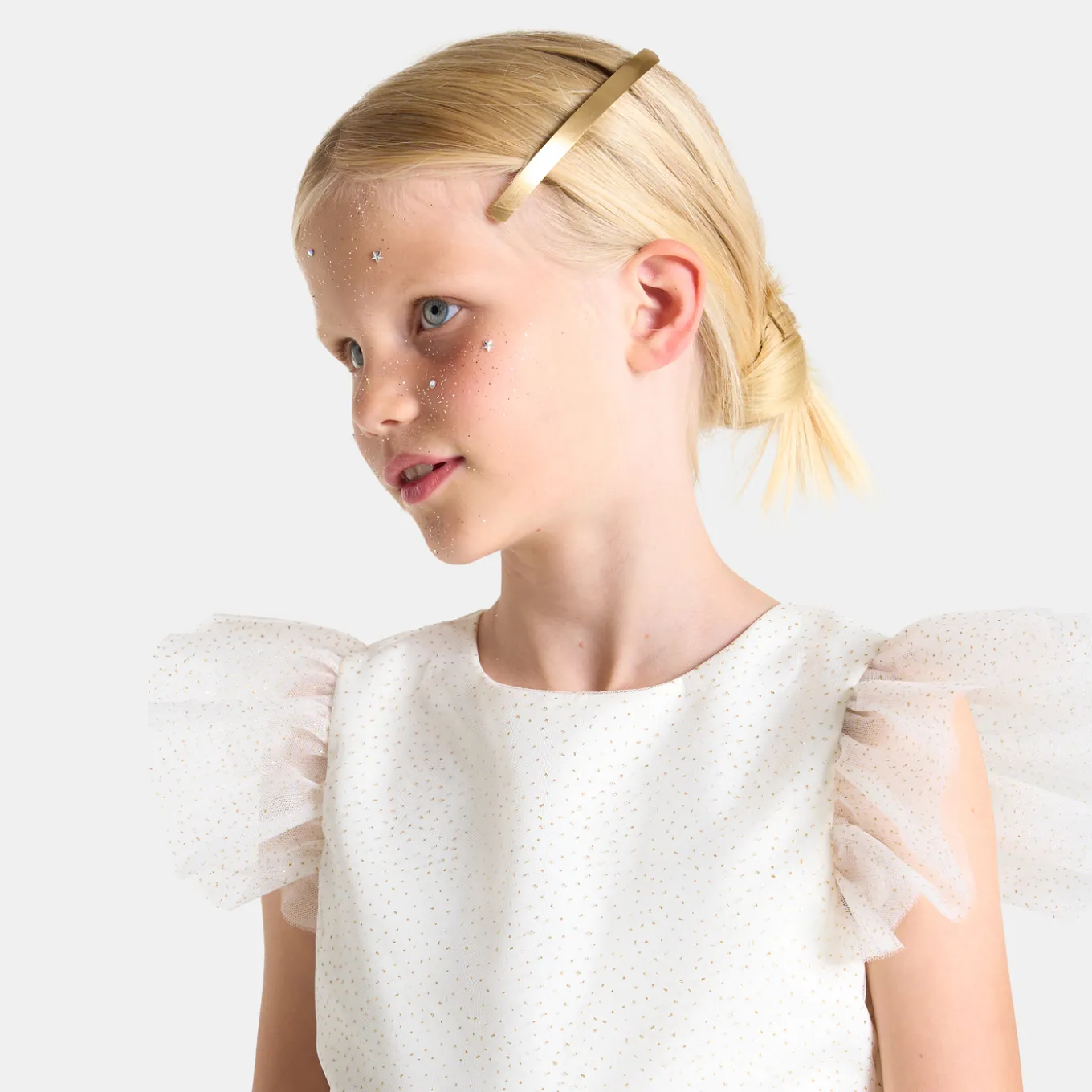 – Ruffled sleeves
