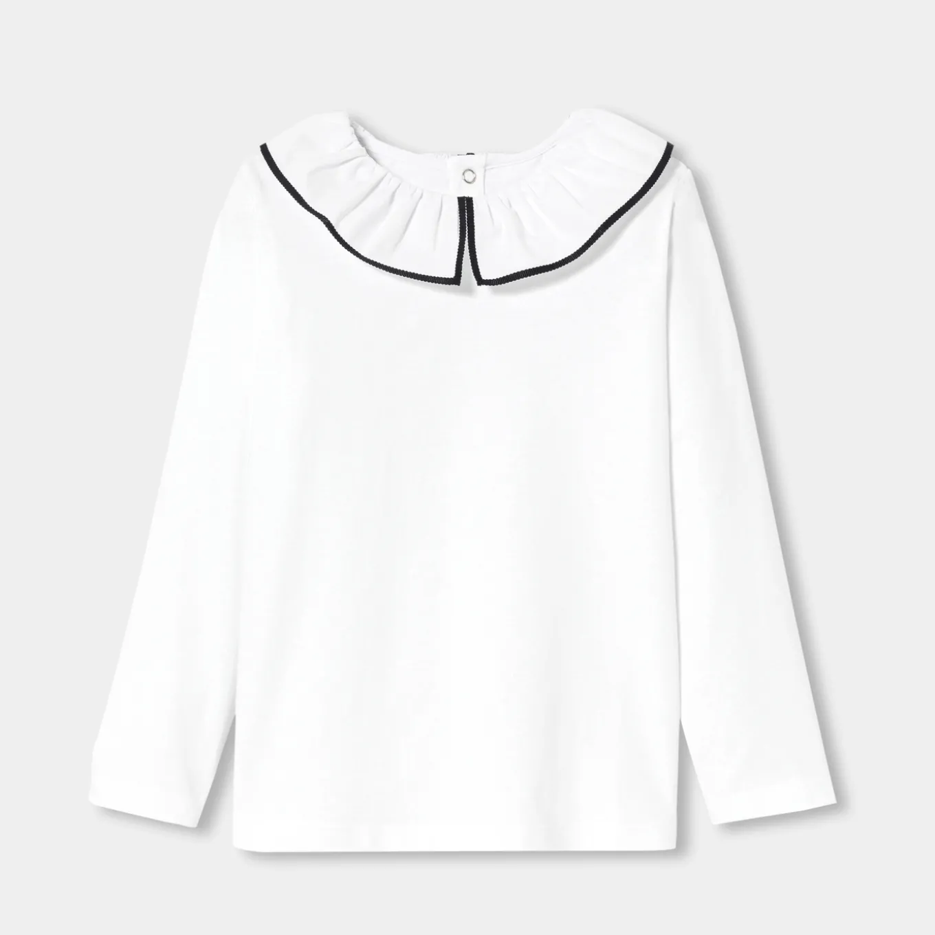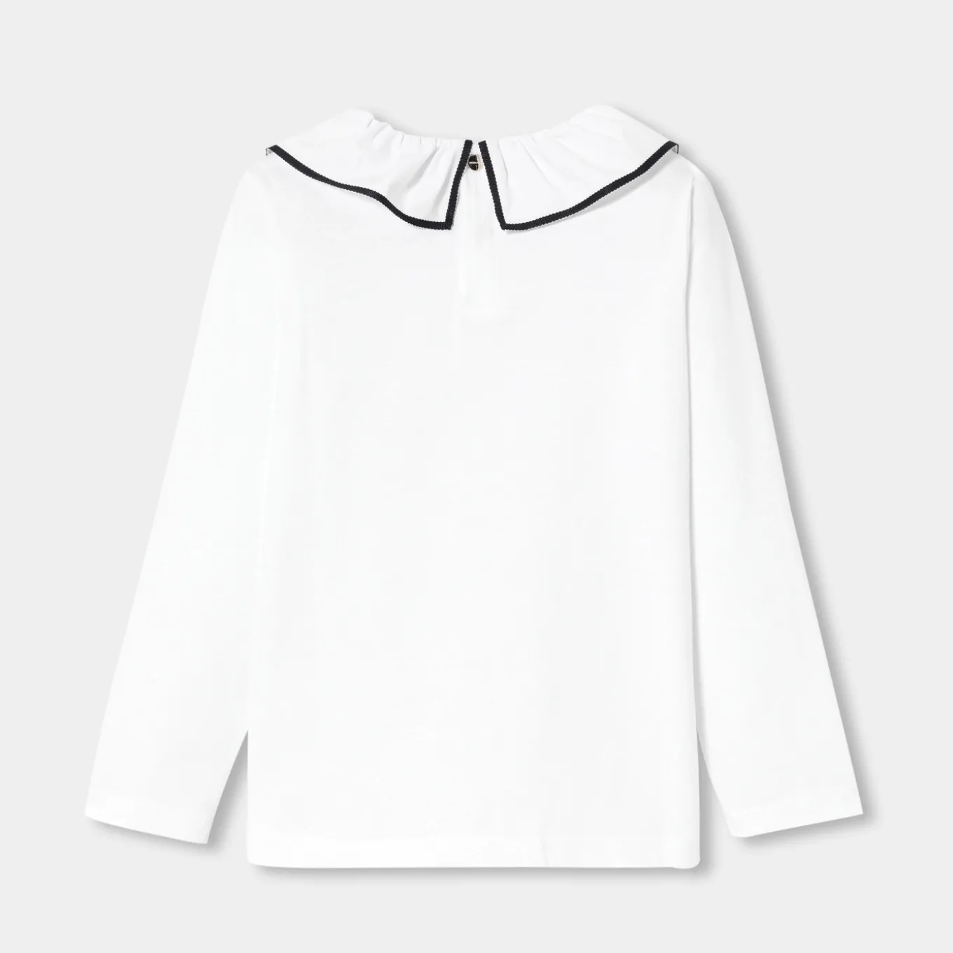 – Poplin collar edged with contrasting grosgrain