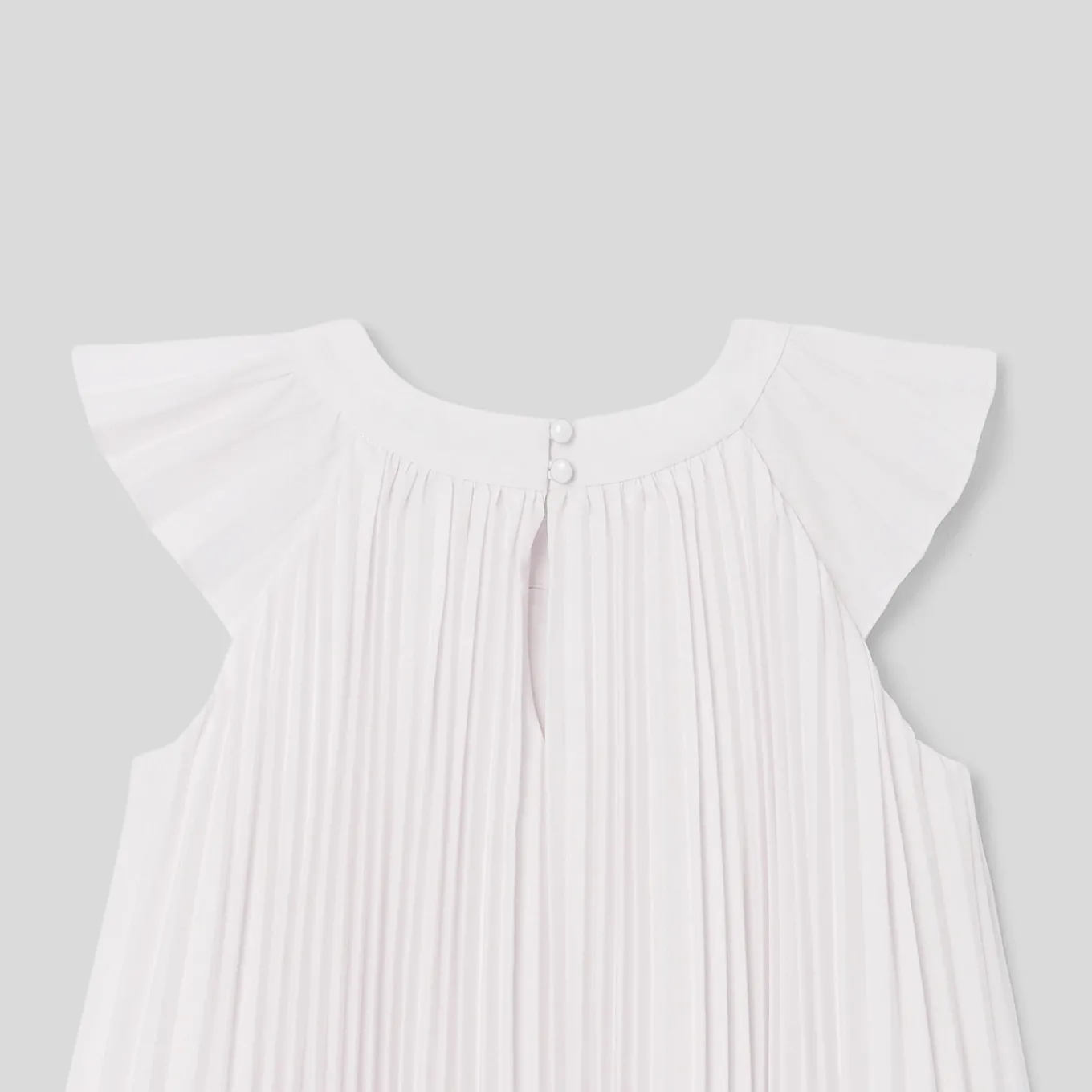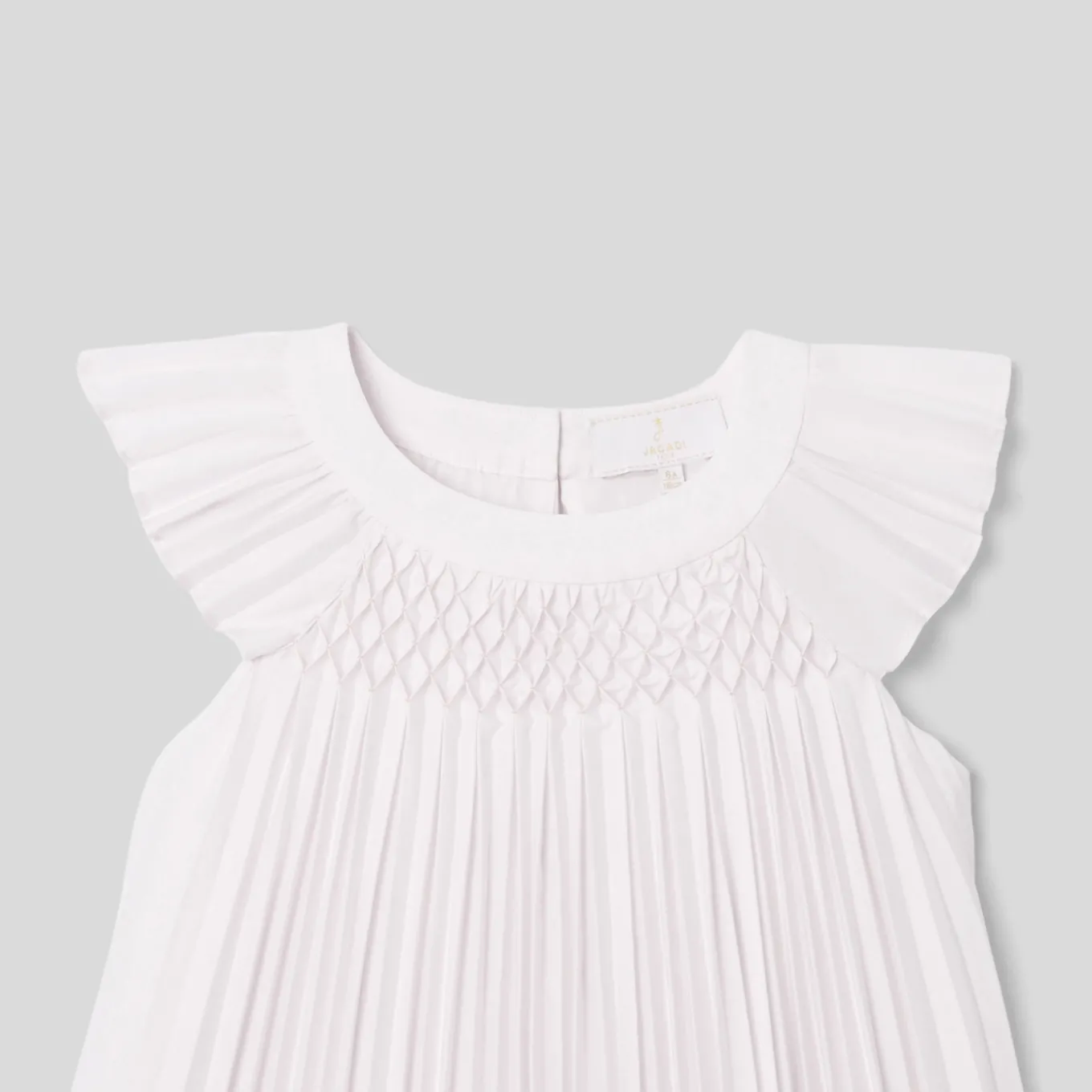– Embroidered permanent pleats at the neckline